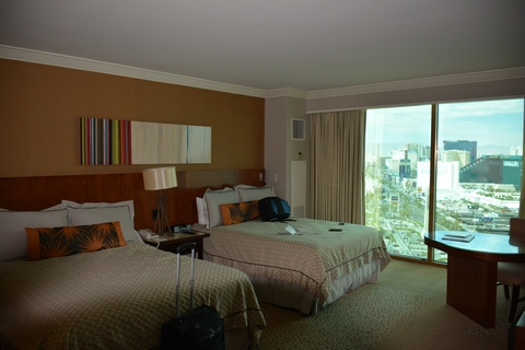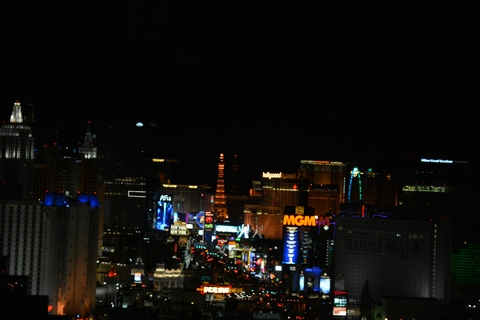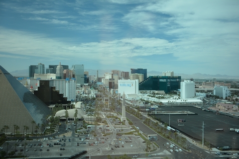 Neu für uns sind die 4 Seile, an denen sich die Leute unter dem Dach über die Hälfte der Freemont Street "fliegen" lassen können. Nennt sich Slotzilla und wurde gerade erst am 27. April eröffnet. Wir laufen ein wenig herum, genießen die Atmosphäre, treffen alte Bekannte (den Mann mit dem Saxophon,..) und verlieren ein wenig Geld beim Black Jack. Irgendwann zieht es uns dann doch zurück in unseren Stripview Room. Den Rückweg nehmen wir über den Strip, wo überraschend wenig Verkehr herrscht.
