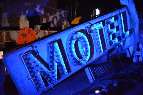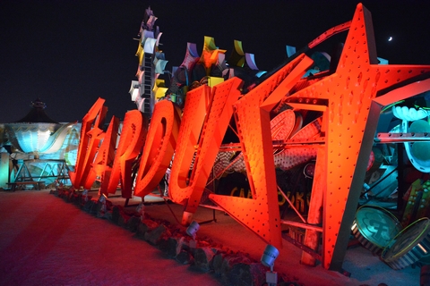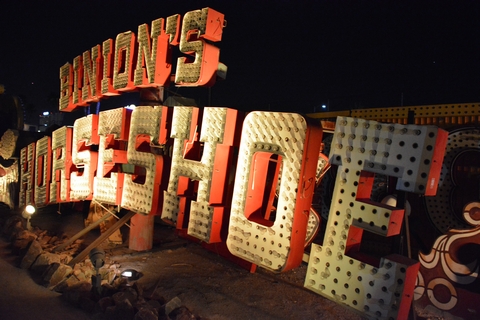 angemeldet. Der Neon Friedhof liegt 2 Blocks hinter dem alten Strip. Die Tour wird von Bill geführt, der uns allerhand über das Museum, die Neons, die zugehörigen Läden, die Designer der Neons und einiges mehr erzählt. Auch wo welche restaurierten Neons bereits wieder in Vegas aufgebaut wurden, wie der Silver Slipper direkt vor dem Museum