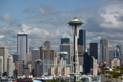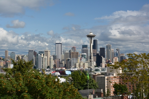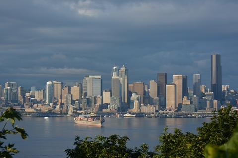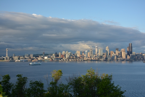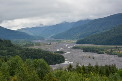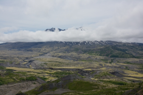 Tag 6 - Samstag, 24.Mai: Seattle - Mount St. Helens - PortlandHeute Morgen wachen wir nicht um 7 Uhr auf! Nein, der Wecker klingelt uns um 6:45 Uhr aus dem Schlaf. Wir haben 263 Meilen vor uns starten um 9:00 Uhr bei grauen Himmel. Immerhin ist es trocken. Mit dem Verkehr haben wir Glück, es ist Samstag. Zunächst geht es eher langweilige 2 Stunden über die I-5 nach Süden. Schön grün ist alles was uns zur Strecke einfällt. Dann biegen wir auf die WA-505 Richtung Mount St. Helens National Volcanic Monument ab. Der Himmel ist noch immer grau, wir hoffen einfach mal dass es nicht regnet oder der Crater mit knapp 1400m sogar über den Wolken liegt.