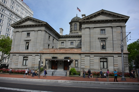 Wir parken unser Schiff in der Nähe des Pioneer Courthouse und sind über die im Vergleich zu Seattle nicht mal halb so teuren Parkgebühren positiv überrascht. Das älteste Gebäude des Bundes im Nordwesten ist unser erstes Ziel.