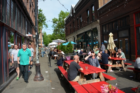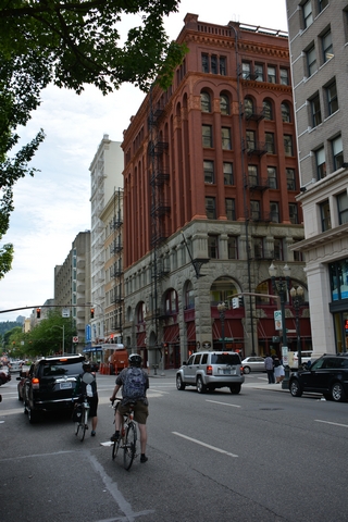 Wir lassen uns von City Maps (geniale App!) langsam bis Skidmore, Old Town leiten. Portland gefällt uns schnell sehr gut. Teilweise mutet die Stadt sehr europäisch an. Auch die Passanten, die uns begegnen sind vom Hippie bis zum Gruftie im amerikanischen Stadtbild in der Menge ungewöhnlich. Schöne alte Gebäude uns sehr grün.
