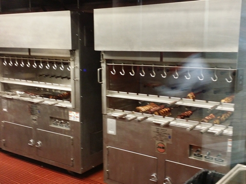 Das Konzept: Lunch inkl. Salat Buffet kostet 49,50. Die "Gauchos" kommen mit Spießen mit verschieden Sorten und Zubereitungen an den Tisch und es wird gegessen bis der Arzt kommt. Für die Amis ungewohnt ist, das Pausen beim Essen nicht automatisch abräumen und Rechnung zur Folge hat. Hier ein kurzer Blick in die Küche