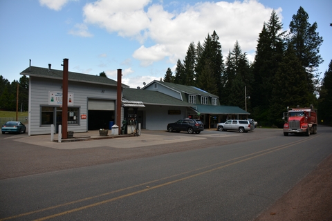 In Prospect können wir dann nicht mehr sitzen und legen einen Stopp ein. Stefan holt sich im "hier gibt es alles Laden" eine hausgemachtes Sandwich und wir rasten ein wenig mit Ausblick.