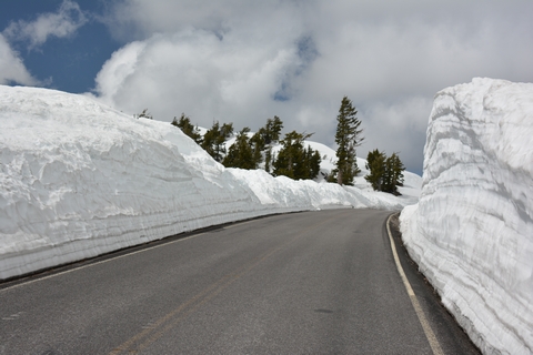 Wir können uns eigentlich nicht satt sehen, aber die Temperaturen von 34°F (ca. 1°C) treiben uns immer wieder zurück in den Wagen. An einen Trail ist nicht zu denken, und das nicht nur aufgrund der Kälte