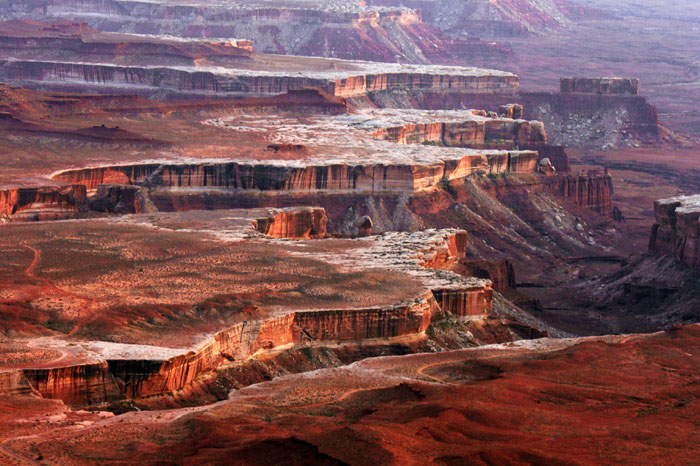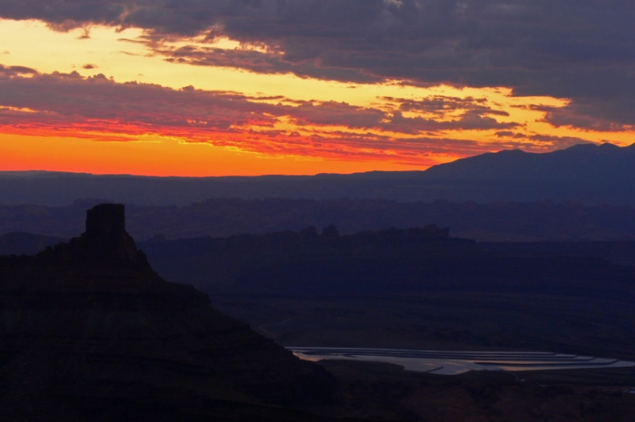 Nun ja. Ich glaube nicht, dass es an dem Fotostopp lag, aber der Weg in den Canyonlands NP hat wieder mehr Zeit in Anspruch genommen als geplant, so dass wir wieder mal den Sonnenuntergang verpassten. Zumindest war es diesmal noch hell, so dass ich zumindest so einige Fotos machen konnte.