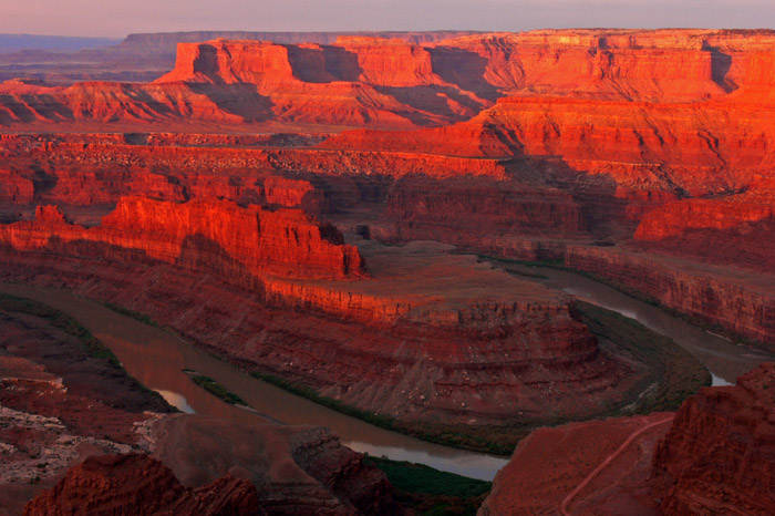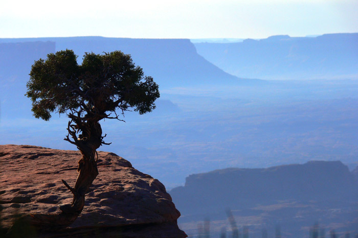 Tag 5 - 02.08.2009 – Dead Horse Point SP – Arches NP – Canyonlands NPDa ich, wie üblich, vor den Mädels wach war, diese aber nach dem gestrigen Abend noch weiter schlafen lassen wollte, beschloss ich zum Aussichtspunkt zu laufen, um dort den Sonnenaufgang zu genießen. Also schnell angezogen, die Fotoausrüstung zusammengepackt und losmarschiert. Ich glaube es waren gut 2 Kilometer vom Campground, aber ich hatte keine Bedenken, dass ich es rechtzeitig schaffen würde.