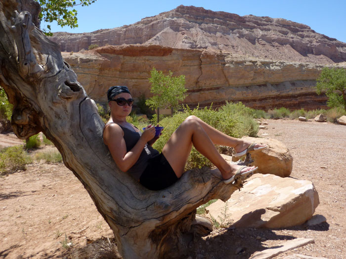 Da es auf dem Campground im Canyonlands NP kein Wasser gibt packten wir wieder die Solardusche aus, um wenigstens den groben Staub und Schweiß abzuwaschen. Anschließend gab es noch ein gemütliches Abendessen und das obligatorische Nachtfoto.