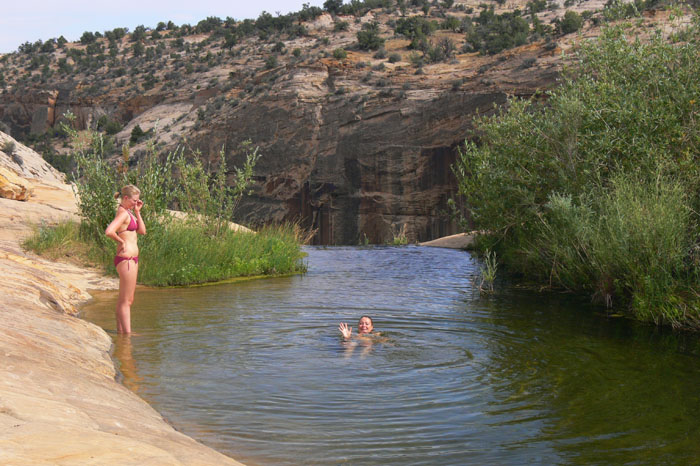 Ok vielleicht würden wir das morgen noch irgendwie hinbekommen. Nachdem wir uns verabschiedet hatten, fuhren wir zu unserem Campground. Ich brauchte nach dem Aufstieg noch eine Erfrischung und so ging ich mit meiner Frau noch im flachen Fluss baden.