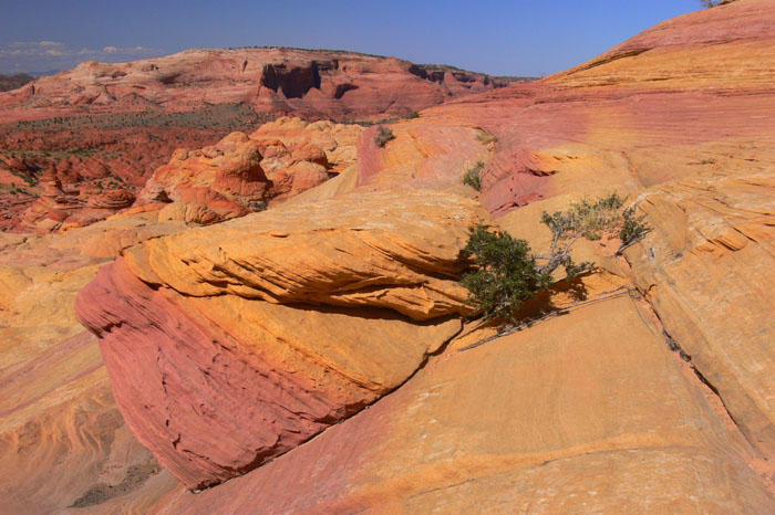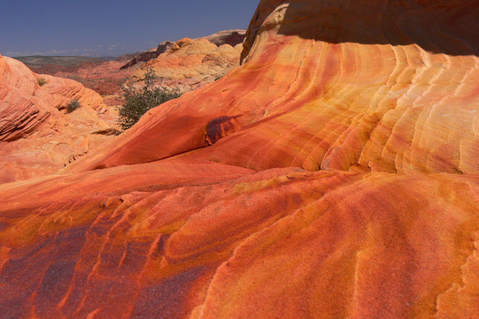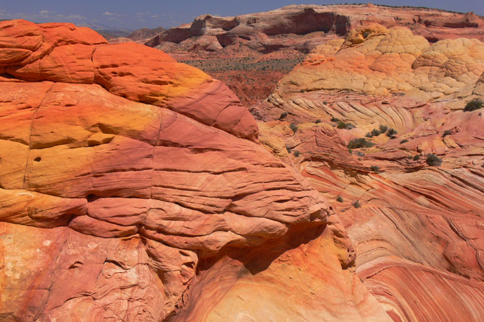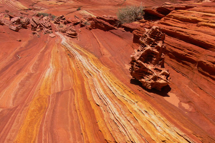 Nachdem wir uns in der eigentlichen Wave ausgetobt hatten stiegen wir den anderen auf die Ebene oberhalb der Wave nach. Dort oben dachte ich, jemand hätte die Felsen bemalt, so intensiv und vielfältig waren die Farben.