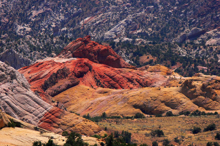 Anschließend gingen wir an Gray Jay vorbei zum Rainbow Valley, welches auch nur ein paar Schritte entfernt lag. Allerdings fanden wir dort keinen geeigneten Abstieg, so dass wir uns mit dem Blick von oben begnügen mussten. Aber auch dieser machten dem Namen alle Ehre.