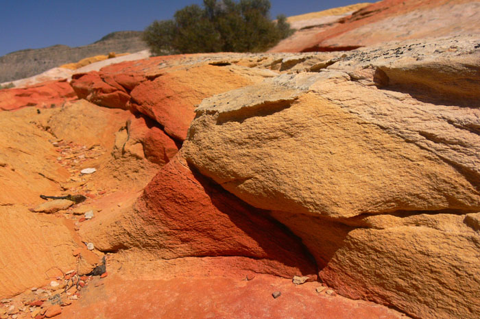 Der Yellow Rock selbst war faszinierend. Überall dieses Spiel mit den Farben als ob jemand den Fels mit Streifen bemalt hätte. Jetzt wurden sogar die Mädels wieder munter und wir schwärmten auf der Suche nach Motiven aus. Ich lasse jetzt einfach mal ein paar Bilder sprechen