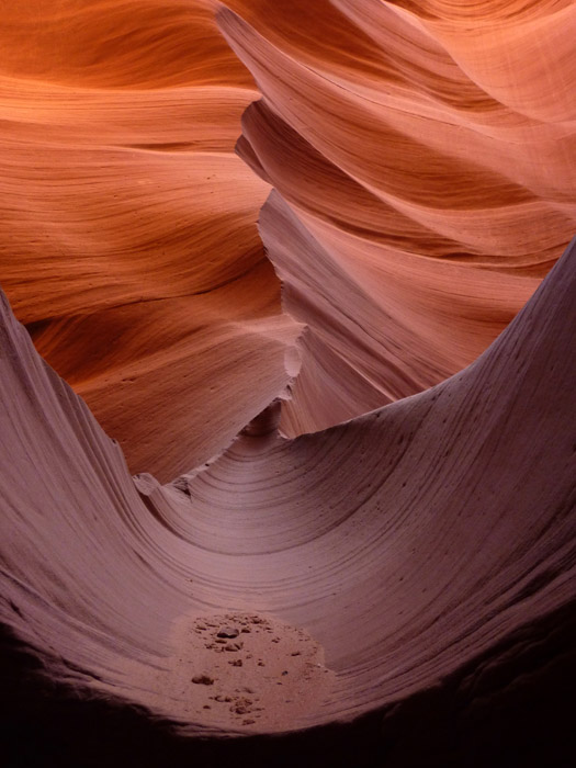 Also machten wir uns in Ruhe fertig und frühstücken am Lake Powell. Danach gings zum Lower Antelope Canyon. Dort angekommen, warteten schon einige Leute darauf, dass die Führung begann. Als wir an die Kasse kamen fragte ich selbstverständlich nach Fotografenpässen für uns. Diese wurden uns auch ohne Probleme ausgehändigt. :D Natürlich hatten einige der Wartenden das mitbekommen und fragten mich, was das sei und ob diese etwas extra kosten. Das Ende vom Lied war, dass die halbe Gruppe mit Fotografenpässen in den Canyon stieg.