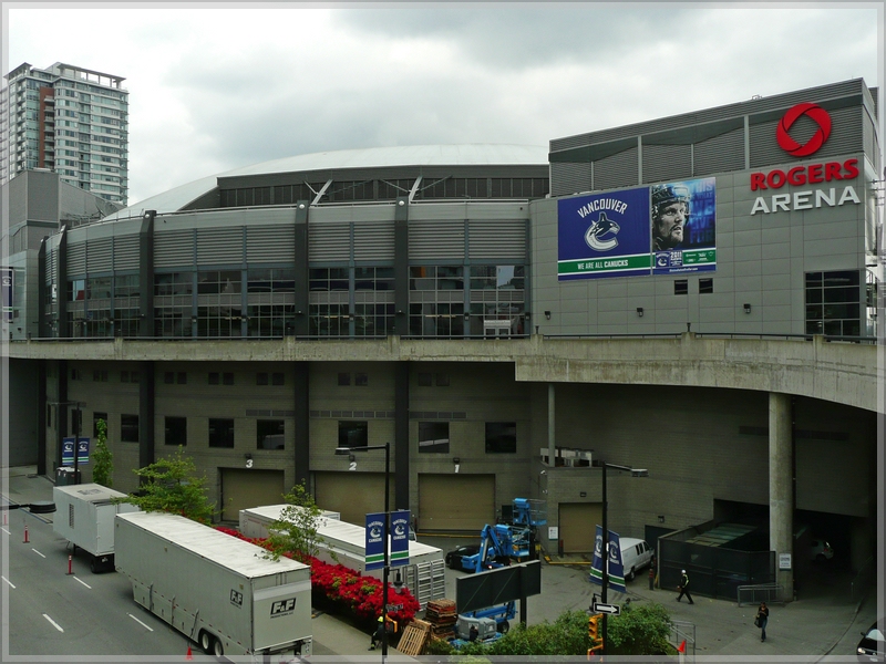 Die Rogers Arena ist wie schon geschrieben die Heimstätte der "Vancouver Canucks" und zur Zeit Schauplatz der NHL-Stanley Cup-Finals. Während der Olympischen Spiele war es Austragungsort sämtlicher Eishockey-Begegnungen. Heute Abend findet in der Halle ein Kampf der angesagten "Ultimate Fighting Championship" statt, weswegen auch hier ein ziemlicher Trubel herrscht.