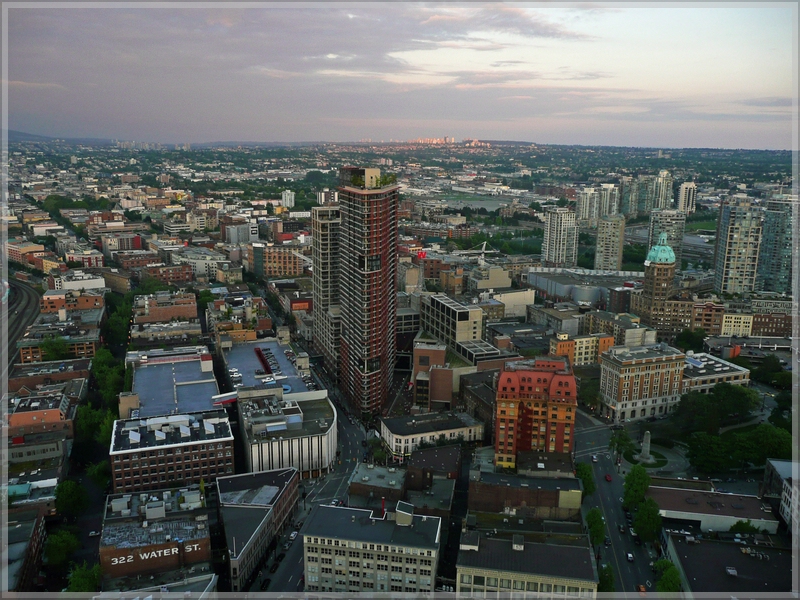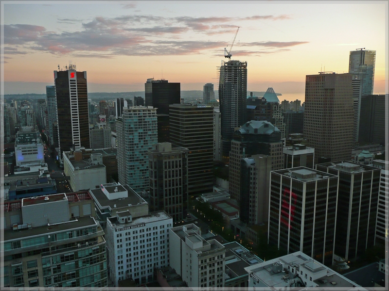 Zwei Stunden später machen wir uns wieder auf - erstmal zum Starbucks, um uns mit einem Kaffee wieder aufzufrischen und dann in die Water Street in Gastown zum Essen. Wir finden ein kleines nettes Lokal, jedoch sind die Portionsgrößen für mich eher ein besseres "Amuse Gueule". Zum Sonnenuntergang fahren wir dann noch einmal hoch zum Lookout.