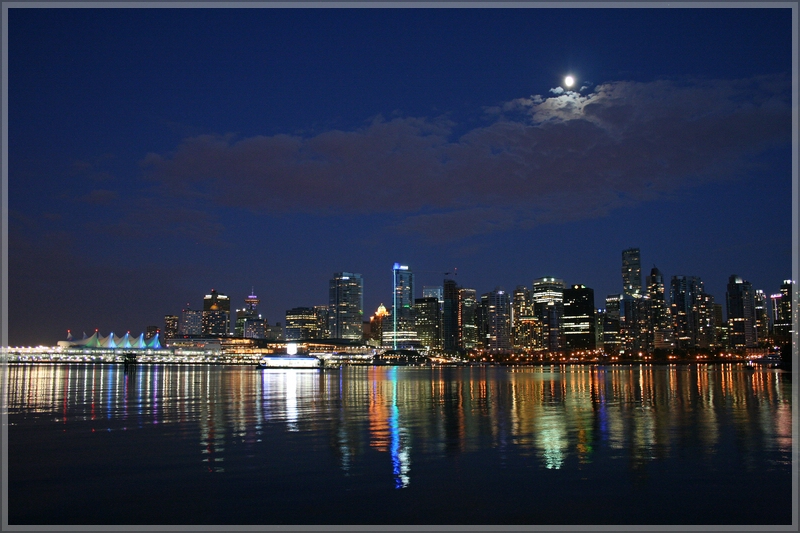Zur so genannten blauen Stunde wollen wir vom Stanley Park den Blick auf die Skyline genießen. Deshalb holen wir das Auto aus der Parkgarage des Canada Place, zahlen beachtliche 41,- CAD und fahren die paar Kilometer bis dorthin.