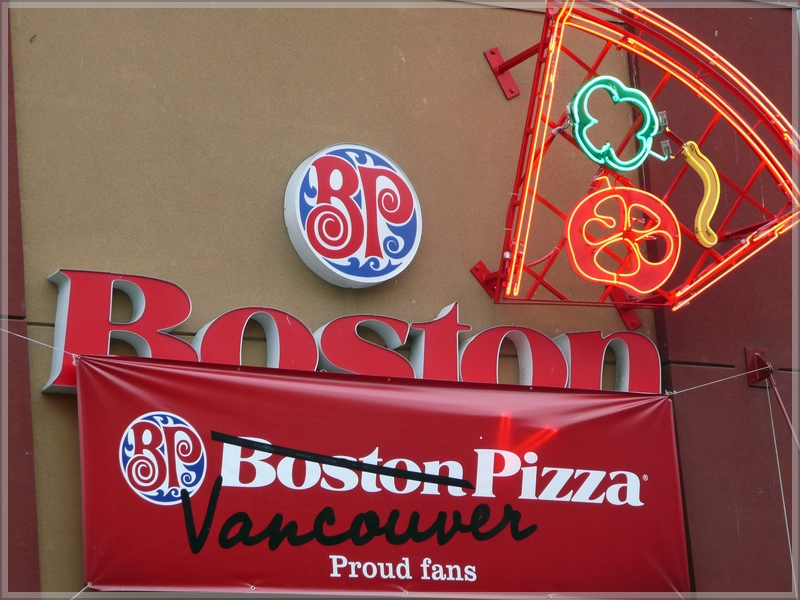 Wir fahren gen Süden nach Richmond, wo auch der Vancouver International Airport liegt. Heute können die Dallas Mavericks im sechsten Spiel gegen Miami ihre erste NBA-Meisterschaft gewinnen und das wollen wir uns nicht entgehen lassen. Die kanadische Kette "Boston Pizza" fungiert nicht nur als Pizza-Restaurant, sondern auch als Sports-Bar und ist daher für uns genau die richtige Adresse. Richtigerweise haben sie sich während der gerade laufenden Finalserie um den Stanley Cup gegen Boston in "Vancouver Pizza" umbenannt.