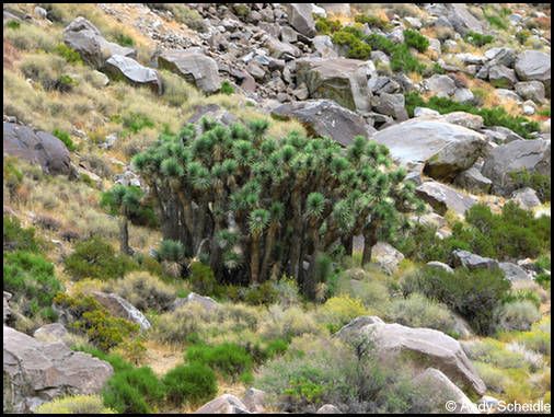 Es ist grün und es wachsen wieder Joshuas hier, auch müssen wir zweimal den Creek durchqueren. Vom Pass oben kann man ins Panamint Valley sehen und es ist kalt. Von nun an geht eine breite Gravel Road bis zum Highway 190 und ich fahre flott durch den Joshua Forrest. Als wir die Gravelroad verlassen blicken wir zurück und entdecken ein Schild und das besagt „Road closed“ – AHA. Dann müssen wir zurück bis Panamint Springs und fahren das Valley nach Süden, auf dem Telescope- und Wildrose Peak liegt Schnee, wir haben wohl das richtige Timing gehabt, gestern den Aufstieg gemacht zu haben.