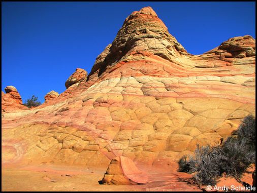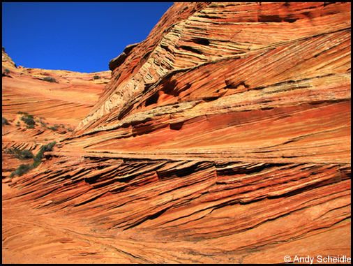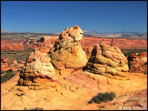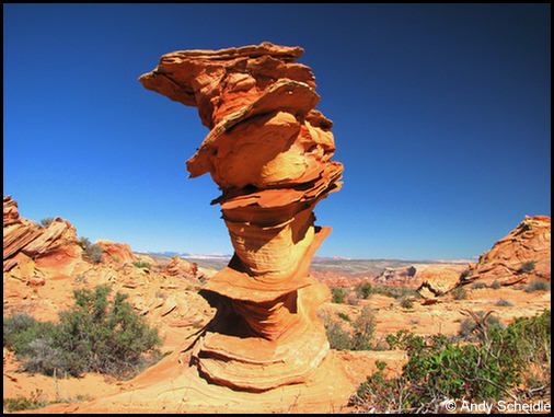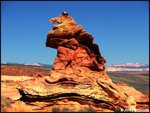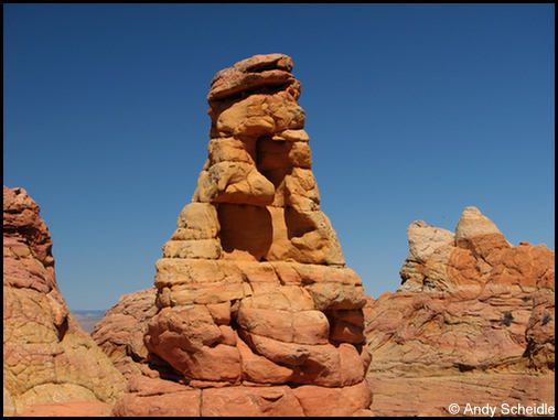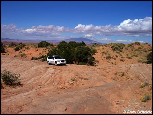 Super ist auch die Fernsicht von hier aus, genau wie weiter östlich von der White Pocket hat man von hier einen Super Überblick auf das Paria Plateau. Man sieht in der Ferne den Bryce, Mollis Nipple, Yellow Rock, Castle Rock, das Hoodoo Gebiet östlich der 89, den Cobra Arch und natürlich den Top Rock mit den Teepees von der Rückseite. Einfach der Wahnsinn und diese Ruhe dazu, traumhaft und um einiges schöner als die Wave. Nach 4 Stunden und einem steilen Aufstieg auf das Plateau sind wir wieder zurück am Trailhead. Die Rückfahrt klappt gut, mittlerweile habe ich das „im Sand fahren“ ganz gut drauf. Nach der Ranch ist der Großteil des tiefen Sandes vorbei und es kommen wieder mehr felsige Abschnitte, deshalb fülle ich in die Reifen wieder Luft nach, so dass wir wieder normalen Reifendruck haben. Bis wir allerdings die House Rock Valley Road erreichen dauert es ziemlich lange.