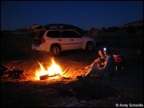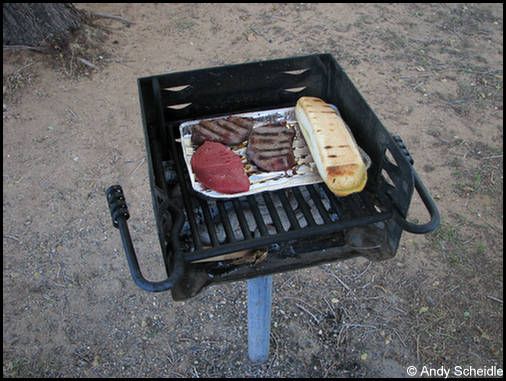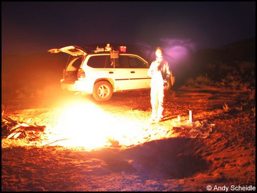 Zuerst wurde alles wieder umgebaut und an seinem Platz verstaut, dann gab es Frühstück. Was Warmes zum trinken gab es leider nicht, so gut sind wir dann doch nicht ausgerüstet. Dafür gab die Asche noch genügend Wärme ab, um die Hände zu wärmen. Nach dem Frühstück noch ne Katzenwäsche aus der Solardusche, die natürlich auch kalt war. Um uns vor der gefürchteten Auffahrt im Sand vorzubereiten, legte ich schon mal den Klappspaten parat und ließ etwas Luft aus den Reifen.