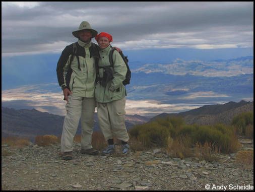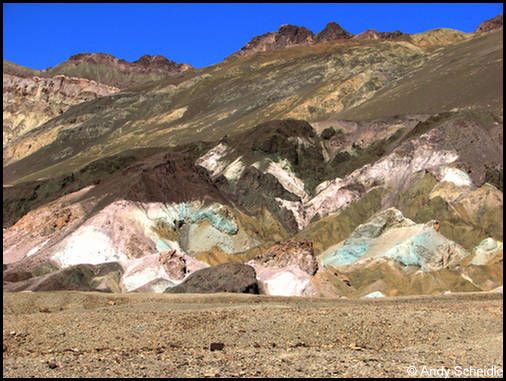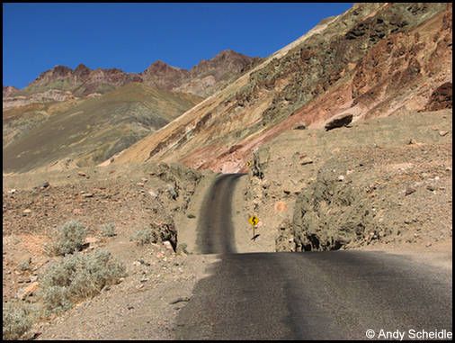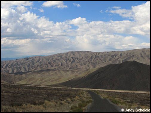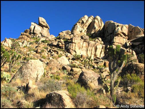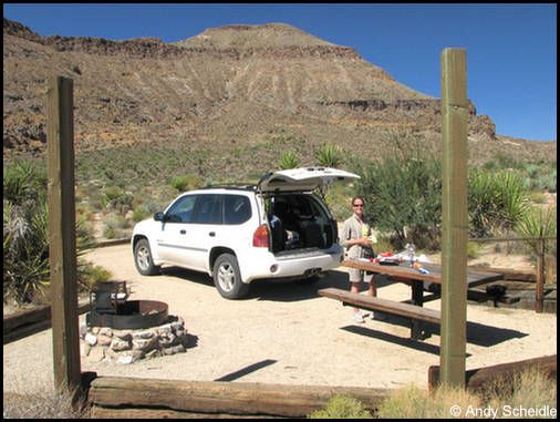 Nach 45 Minuten müssen wir schweren Herzens umdrehen, da die Sonne bald hinter der Bergkuppe verschwinden wird und wir noch bei Tageslicht auf Teer sein wollen. Es war zwar nur ein kurzer Besuch, aber er hat ausgereicht für den unteren Teil, wir sind zufrieden damit und fahren zurück. Als die Sonne untergegangen ist sind wir auf der Gravelroad und bei einsetzender Dunkelheit auf Teer. Auch das hat gut geklappt, wir haben noch ein paar Bilder vom Sonnenuntergang und den Joshuas gemacht und erreichen glücklich das Motel in Mesquite.