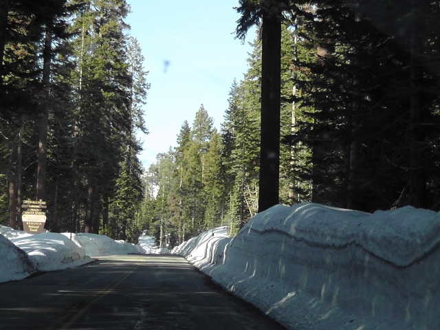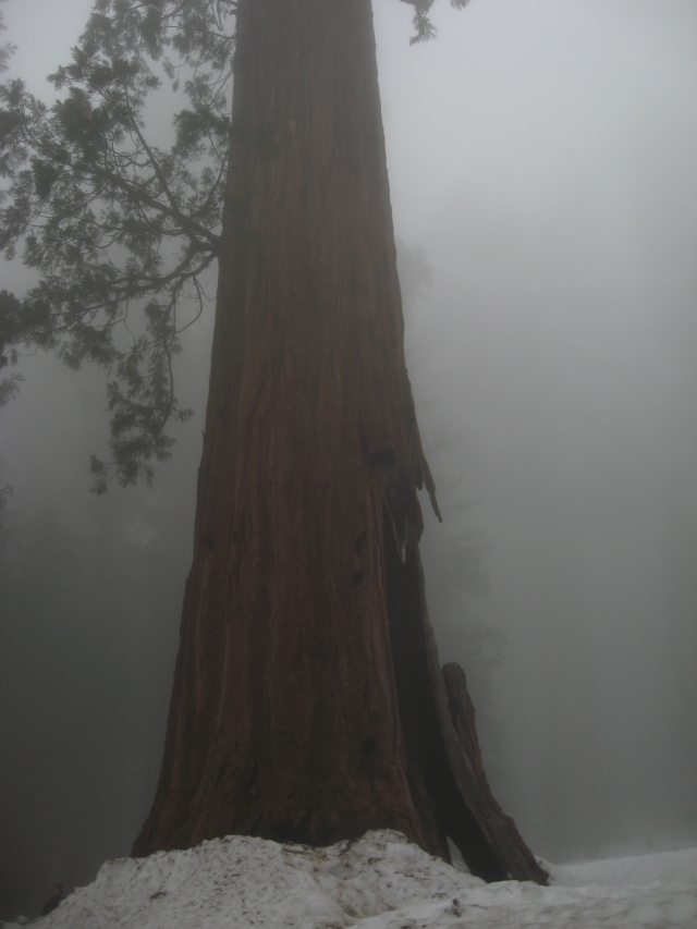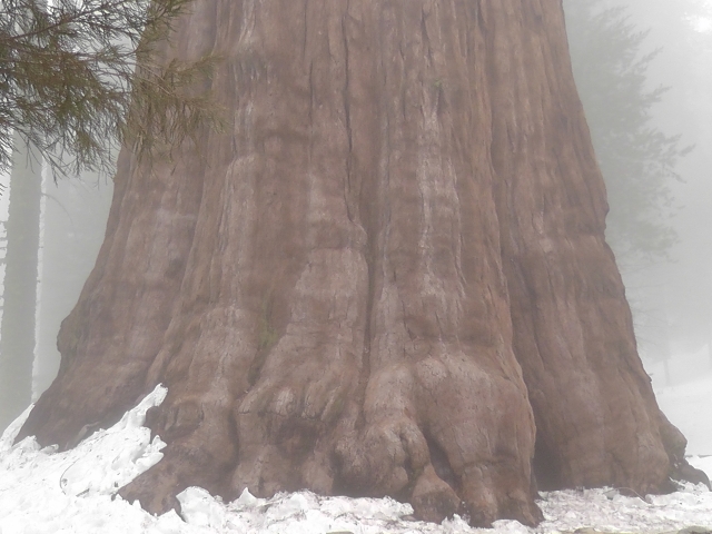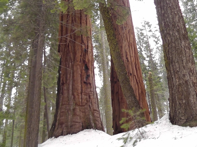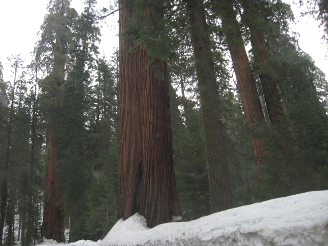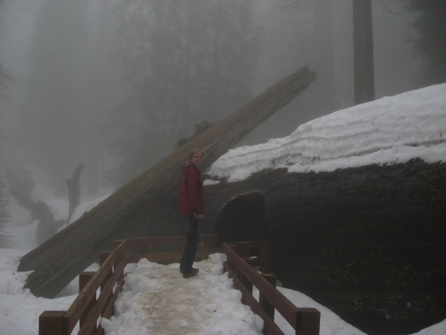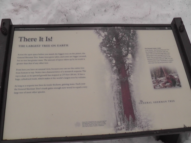 Wir fuhren weiter zum Sherman Tree. Der Parkplatz war voll, so mussten wir erst noch eine Runde drehen, bis wir dann endlich einen Platz finden konnten. Der Weg war sehr verschneit und doch war einiges los.