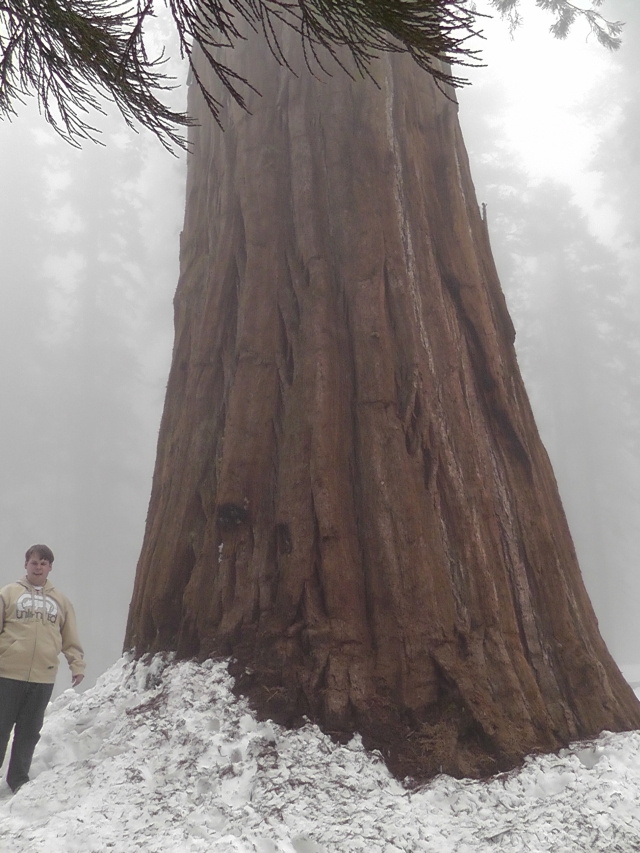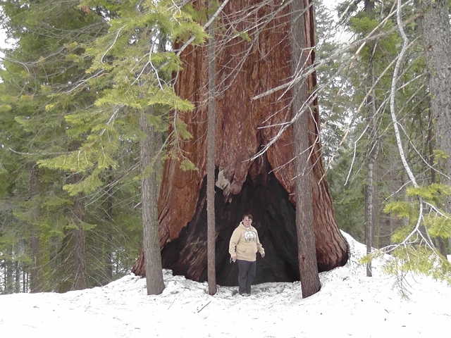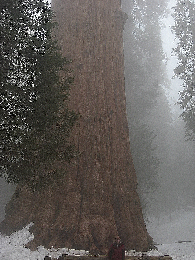 An einem kleinen Parkplatz, der sehr verschneit war, stiegen wir aus um uns die Bäume etwas anzusehen, was für Dimensionen.