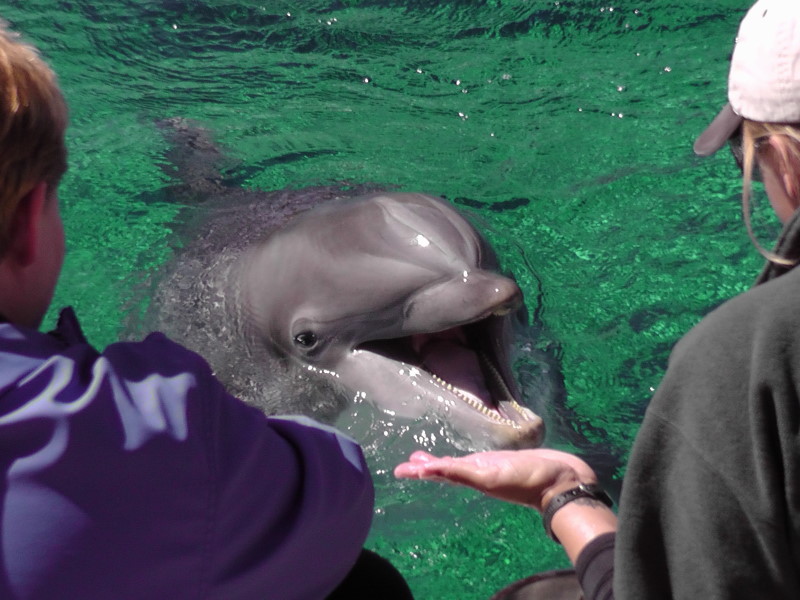 Die Delfine waren recht nett, nur das Aquarium ziemlich klein, auch dieses schwimmen mit Delfinen sah recht interessant aus.