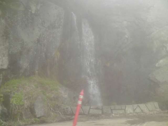 Nun erreichten wir den Stau und warteten neben diesem kleinen Wasserfall darauf, dass wir weiter konnten.