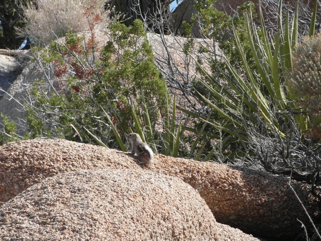 Am Parkplatz für den Skull Rock werden wir auch gleich fündig und spazieren dann noch entlang des Trails bis zu Campingplatz, den Rückweg suchen wir uns eher querfeldein über die ganzen tollen Felsen und bestaunen immer wieder diese tollen Pflanzen, die es schaffen in dieser kargen Umgebung so schön auszusehen. Bei den JumboRocks haben wir auch tierischen Besuch... touristisch gesehen ist auf dem Trail schon mehr los, aber vollkommen in Ordnung.