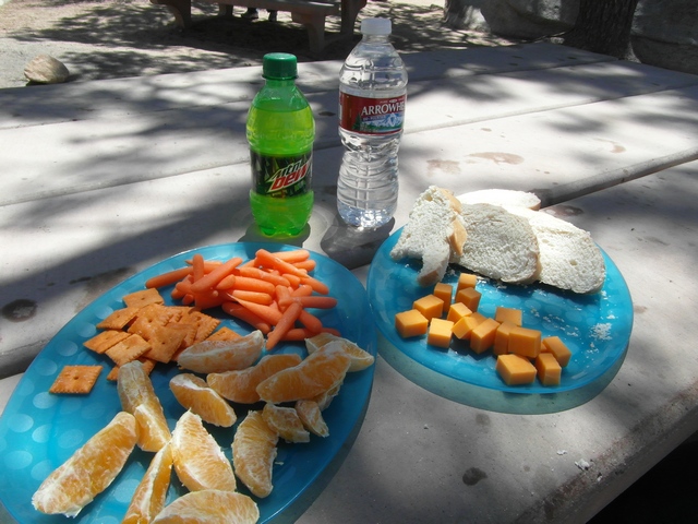 Bevor wir dort am Parkplatz picknicken, müssen wir uns das Mittagessen ja erstmal verdienen, also laufen wir den kleineren Hidden Valley Trail. Hier ist es langsam schon ganz schön voll und an vielen Felswänden hängen Kletterer. Es ist halt Sonntag, und da machen die Amis wohl gerne so schöne Ausflüge. Am Picknickplatz wurde auch fleißig gegrillt, so dass uns echt das Wasser im Mund zusammenlief...  :o