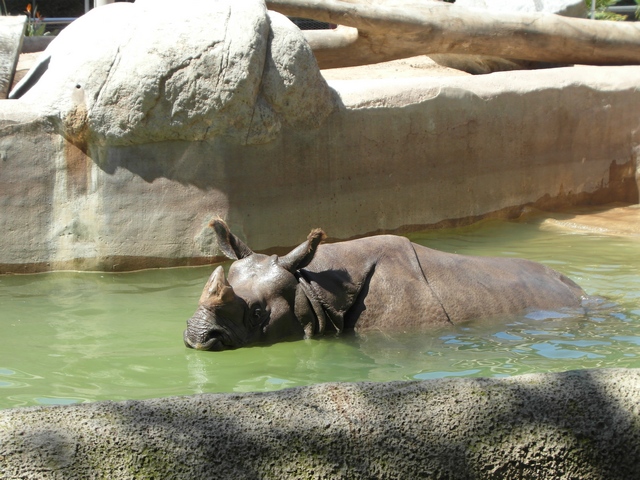 Gegen 10 Uhr treffen wir ein, haben nur eine ganz kurze Schlange vor uns und dann gleich ab in den Park.  Zur Orientierung machen wir zu Beginn erstmal die Bustour quer durch den Zoo. Der Fahrer erklärt nebenher ein paar Sachen zu den Tieren und wer wie wann auf welcher Anlage ist. :) Leider haben wir heute bei den Hippos Pech, die haben zwar ein Kleines, allerdings ist heute Papa-Tag und der Riese hat die Anlage für sich alleine und schwimmt auch nicht. :(