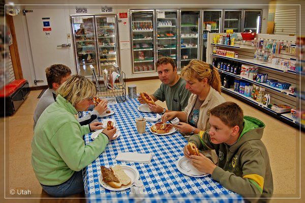Wir standen auch die ganze Zeit unter Druck, denn wir mußten bis 16.00 Uhr unsere 2 Zimmer in Green River canceln. Nirgendwo war ein Telefon zu finden.