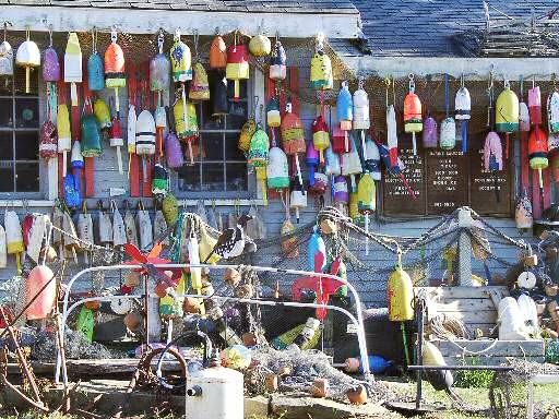 bekomme ich endlich eine kleine hölzerne Hummerboje als Erinnerung an die Millionen bunter Tupfen auf dem Meer. Jeder Fischer hat unterschiedlich farbige Bojen an denen die Hummerfallen befestigt sind und die er auf diese Weise leichter findet bzw. mit dem Fischerboot „abfahren“ kann.