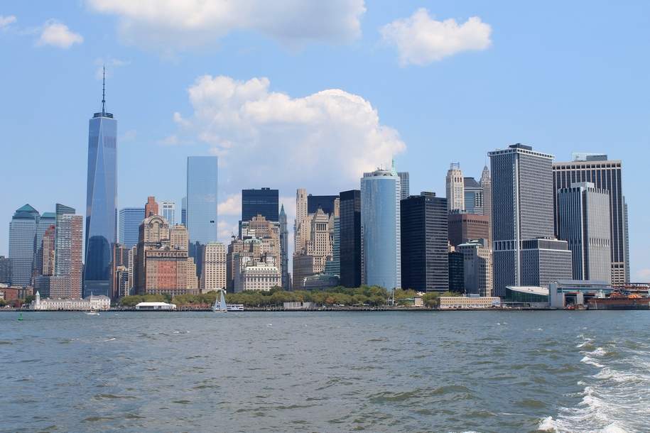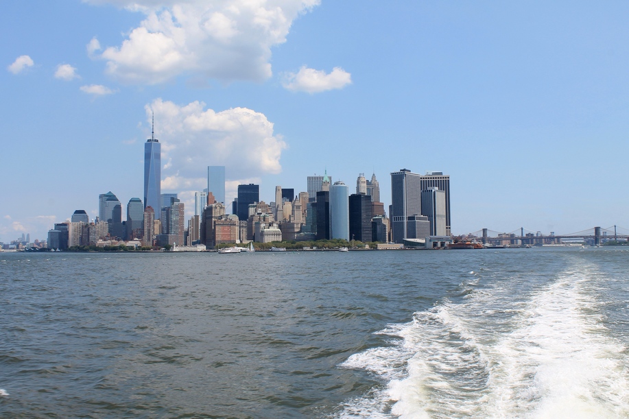 9. Tag Montag, 11.August 2014Nach einer wiederum sehr geruhsamen Nacht waren wir drei auch gegen 7 bereits munter. Blick aus dem Fenster : Wetter immer noch super, was will man mehr Da es laut Weatherchannel morgen schlechter werden soll, wollten wir heute den Tag möglichst noch „draußen“ verbringen. Die Path-Linie am Hotel fuhr ja auch wieder reibungslos und so ging es damit rüber zum World Trade Center. Der neue Turm sieht schon sehr beeindruckend aus und ich glaube, der Blick von der Aussichtsplattform sobald die Anfang 2015 eröffnet wird, muss gigantisch sein.