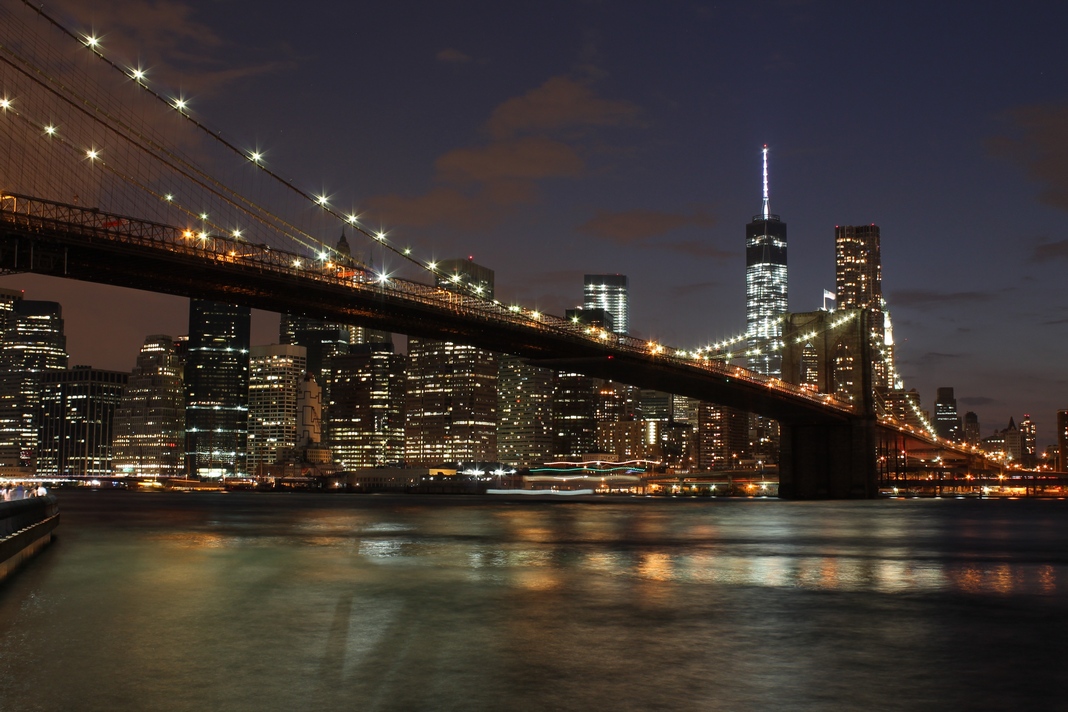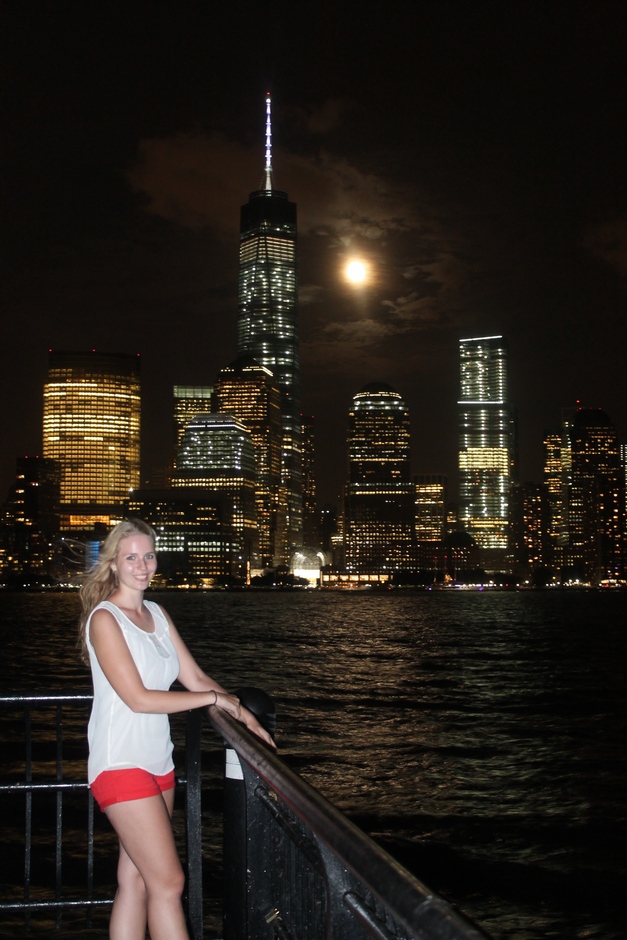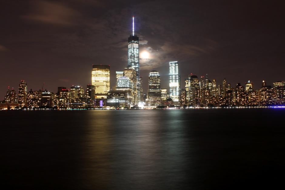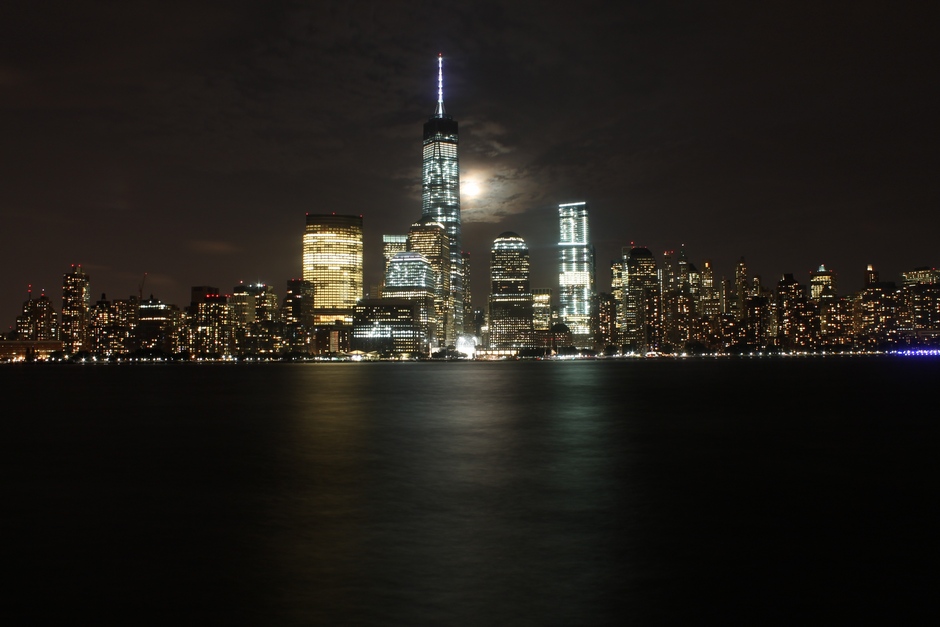 Am Hotel haben wir noch ein paar Skyline-Fotos gemacht, der Mond stand gerade so schön neben dem WTC :
