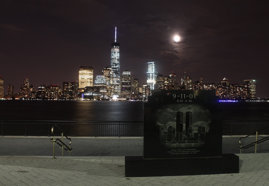 Ein Foto wollte ich noch posten, das ist vom Montagabend. Auch auf der New-Jersey-Seite gibt’s ein kleines Memorial zum 11.September mit einem verbogenen Stahlträger von den Twin Towers, einer kleinen Gedenkstätte und dem Stein hier. War nicht ganz einfach das zu machen, ohne das immer irgendjemand durchs Bild ging, lief oder radelte. Ist ein sehr stimmungsvolles Bild geworden wie ich finde und ein ganz gutes letztes Foto für meinen Reisebericht :