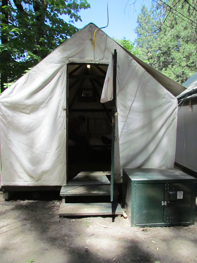 Irgendwann gegen 11 Uhr kamen wir am Parkplatz von Curry Village an. Nachdem wir auch einen freien Parkplatz gefunden hatten versuchten wir unser Glück ob bereits ein Zelt bezugsfertig ist. Und siehe da, wir hatten Glück  8)! Nachdem uns die Campregeln und die "Wie-verhalte-ich-mich-gegenüber-Bären" Regeln erläutert wurden, konnten wir unsere Koffer ins Zelt bringen. Heute gabs also die Zweite Nacht hintereinander unter freiem Himmel.