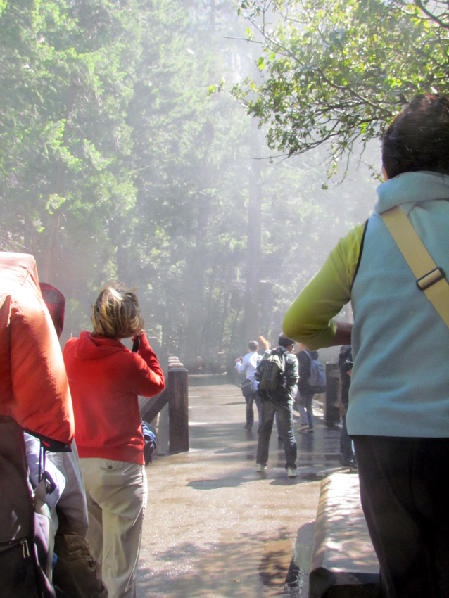 Die Dusche im Yosemite haben wir auch abbekommen, mein Schatz hat immer schnell die Kamera gezückt, Foto gemacht und gleich wieder vor der Gischt geschützt. Allerdings hatten wir im Yosemite auch den ganzen Tag Nieselregen, so dass wir eh etwas nass waren.  :(