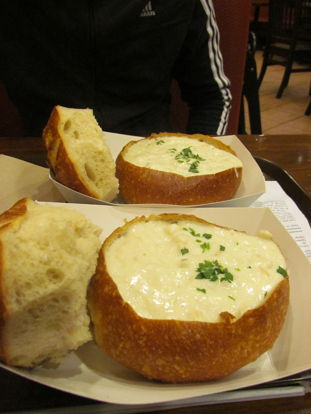 Zum Abendessen gabs dann eine original "Clam Chowder" im Sauerteigbrot. LECKER!!!