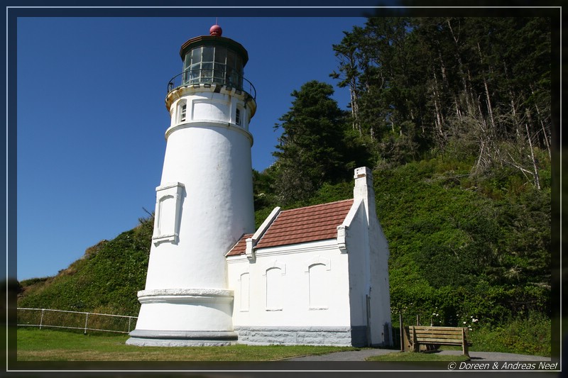 Nach dem Essen setzten wir unsere Fahrt fort und gelangten bald zum Heceta Head. Dort stellten wir unser Wohnmobil auf dem Parkplatz ab und liefen den Trail hinauf zum Lighthouse.