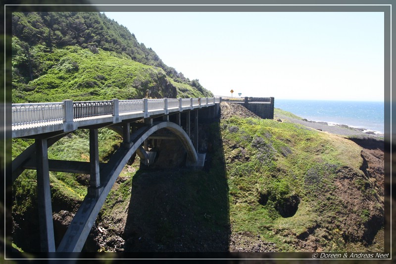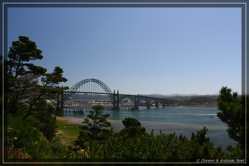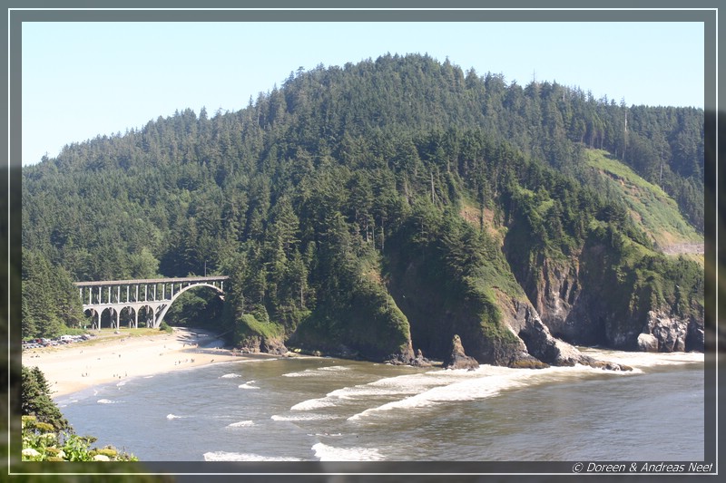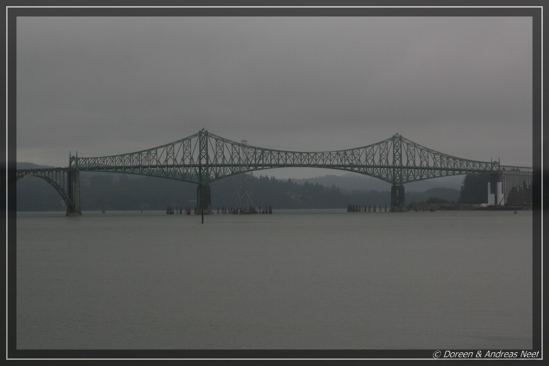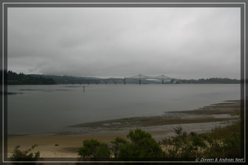 Wir fuhren weiter, machten aber noch einen kurzen Halt an den Oregon Dunes, um ein wenig Sand für daheim zusammeln. Über die längste Brücke Oregons gelangten wir nach North Bend und nahmen dort im Visitor Center einige interessante Flyer und Karten mit.