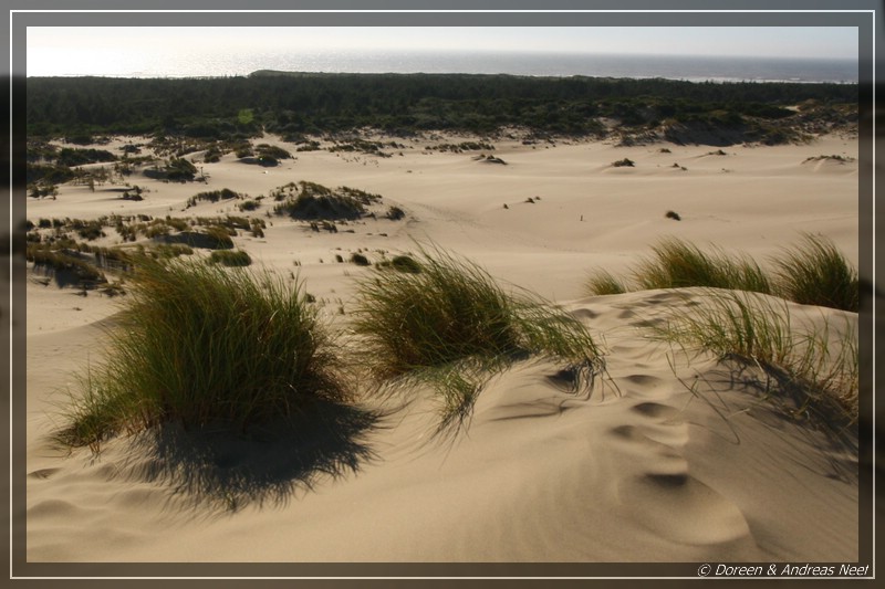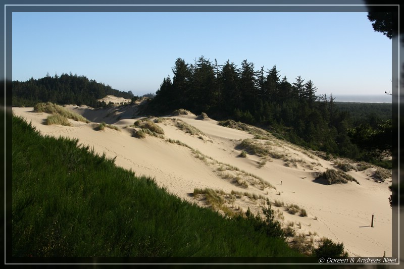 Aufgrund einiger eher abratender Berichte im USA-Reiseforum ließen wir den Besuch der Sea Lion Caves aus. Stattdessen fuhren wir zu den Oregon Dunes. Lisa und Vincent waren nicht mehr für einen Spaziergang zu begeistern. Sie blieben lieber im Wohnmobil zurück und hörten eine CD, während wir einen kurzen Walk durch die faszinierenden Sanddünen machten.
