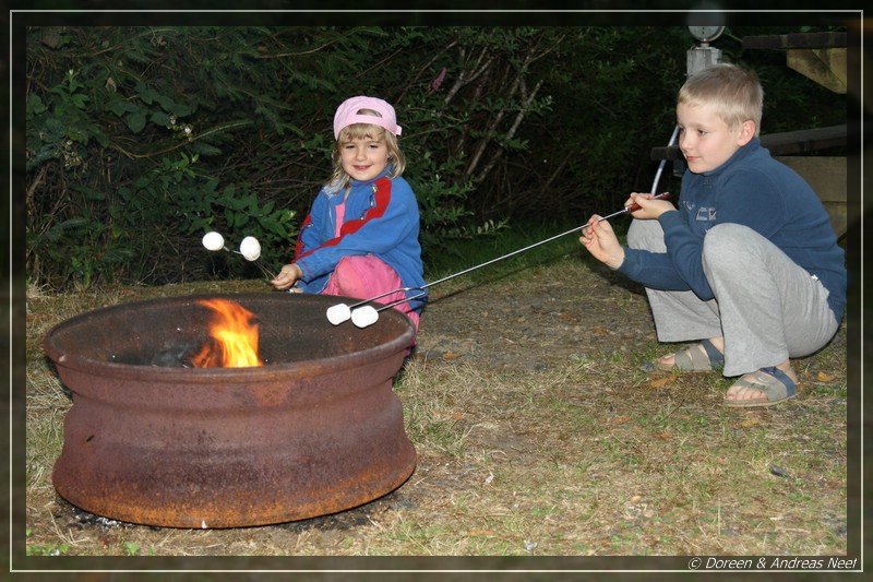 Für die Kinder gab es Pork-Sausages am Spieß, die der deutschen Bratwurst letztlich sogar ziemlich nahe kamen. Zum Abschluss rösteten die Kinder ein paar Marchmallows über dem Feuer.