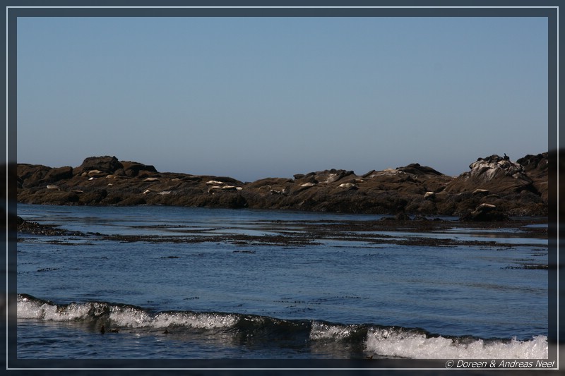 Am Strand waren einige Ranger zugegen, welche auf viele sehenswerte Einzelheiten aufmerksam machten, bereitwillig Fragen beantworteten und außerdem zwei Fernrohre aufgestellt hatten, durch die man Robben auf den Felsen sowie ein Möwennest mit Jungtieren beobachten konnte.