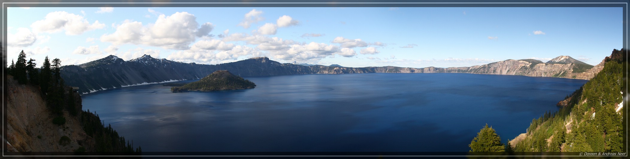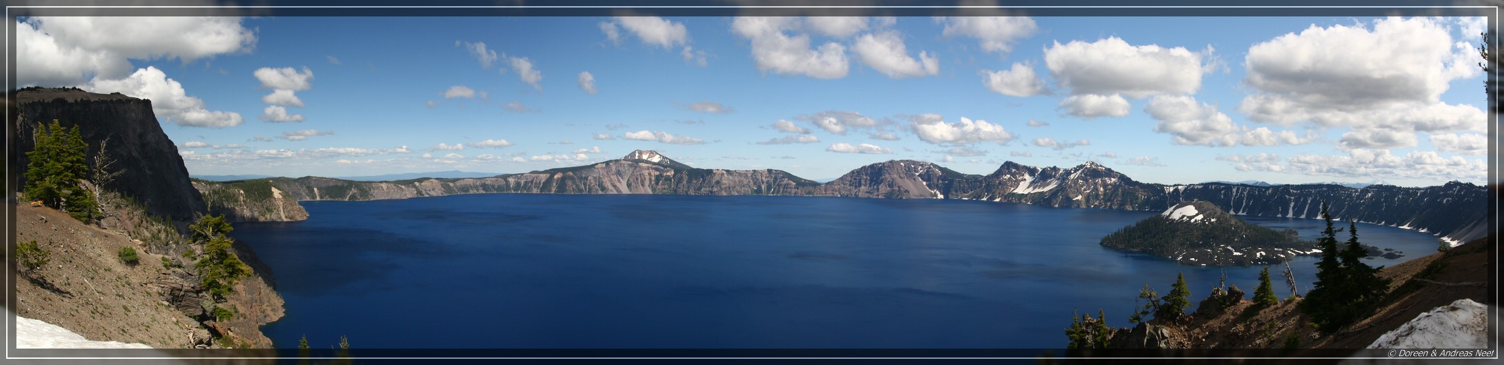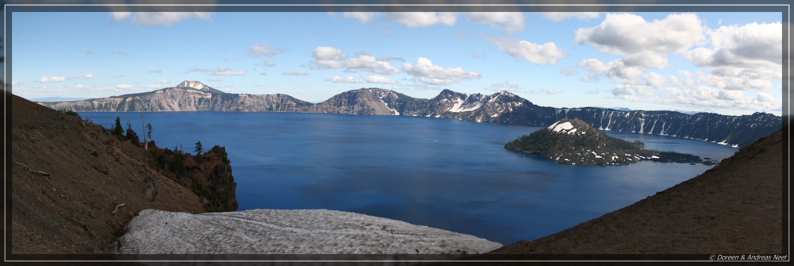 Er ist einfach wunderschön, der tiefblaue Crater Lake. Und ihr hattet ja 2 Wochen später immer noch ordentlich Schnee da oben.