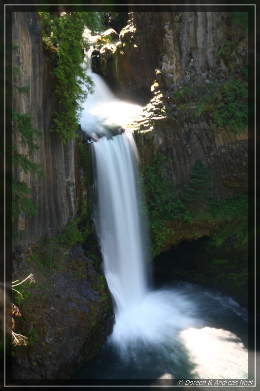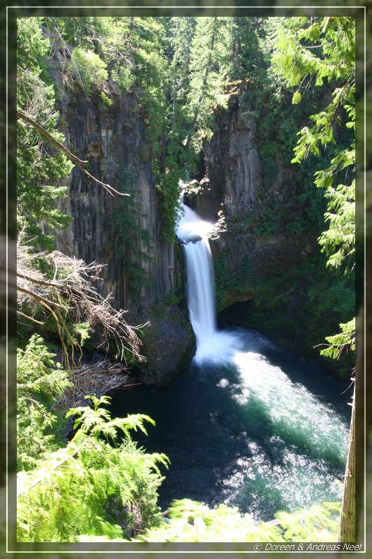 Für 36 Meilen folgten wir dem Highway 138 nach Osten und bogen am Slide Creek Reservoir links ab, um zu den Toketee Falls zu gelangen. Am Trailhead konnten wir die 4m dicke, hölzerne Pipeline bestaunen, die Wasser vom North Umqua River zu einer Generatorstation stromabwärts leitet.