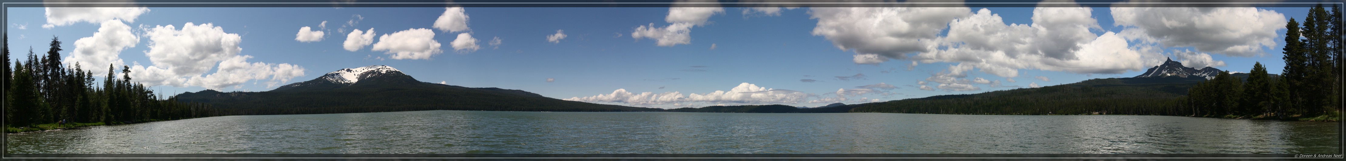 Die weiteren Abstecher zu den Whitehorse- und den Clearwater-Falls ließen wir aus, denn inzwischen war es bereits nach 13:00 Uhr und bis zum Crater Lake waren es noch gut 40 Meilen. Am Diamond Lake bogen wir ab und machten Mittagspause am South Lake Picknick Area. Doreen setzte einen Topf Spaghetti auf den Herd, unterdessen beglich Andreas die 5$ Day-Use-Fee an der Self Registration Box und ging für ein paar Fotos hinunter zum See.