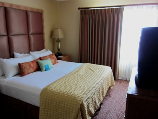 Um 13.00 Uhr kommen wir in Las Vegas an. Das Hotel, das Thomas ausgesucht hat, ist wirklich schön. Es liegt in einer Parallelstraße zum Strip gleich hinter dem Hooters Casino. Unser Zimmer ist kein Zimmer, sondern eine ganze Wohnung mit Wohnzimmer, Küche, 2 Schlafzimmern und 2 Bädern!
