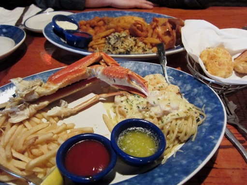 Eigentlich wollten wir uns jetzt noch das Wynn ansehen, das Parkhaus ist aber so weit weg davon entfernt, dass der Weg zum Casino sicher schon ½ Stunde dauern würde - und dafür sind wir schon zu spät. Wir haben Hunger und fahren direkt weiter zum Red Lobster - zum letzten Mal! Dort essen wir köstlichen Lobster mit Nudeln Alfredo und fahren anschließend wieder ins Hotel.