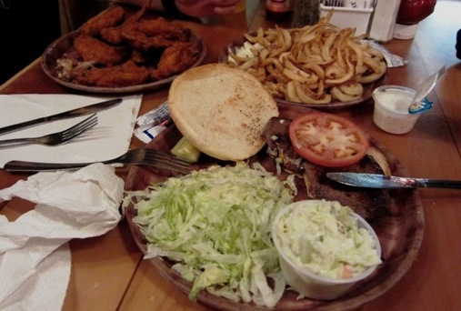 Nachdem wir nach endlosen Kilometern endlich unser Auto wieder erreichen, fahren wir ins Hotel, wo ich augenblicklich in einen tiefen, komatösen Schlaf falle. Die Hitze macht mich fertig. Wenn das Termometer über 35 Grad steigt, kann ich nur noch im Schatten sitzen und nichts tun, alles andere schafft mich… Als ich aufwache, hat Thomas immernoch Hummeln im Hintern. Er hat im Fernsehen eine Taco Bell Reklame gesehen und will jetzt unbedingt dorthin. Da er meint, im Outlet South einen Taco Bell gesehen zu haben, fahren wir dorthin. Dort ist aber keiner. Stattdessen kaufen wir beim Nike-Store eine Tasche als Mitbringsel, ein Basecap und eine Sweaterjacke. Dann fahren wir in den Crocks-Laden, erstehen dort je ein paar Schuhe (sehr bequem!) und fahren dann umher, immer noch auf der Suche nach einem Taco Bell. Aber Fehlanzeige. Weil auch ich inzwischen Hunger habe, laufen wir nach einem Kurz-Stop im Hotel zum Hooters, wo wir ein Steak-Sandwich und Chicken Wings essen und uns über die Amis wundern, die lautstark ein Rugby-Spiel an den dort überall hängenden Fernsehern verfolgen.